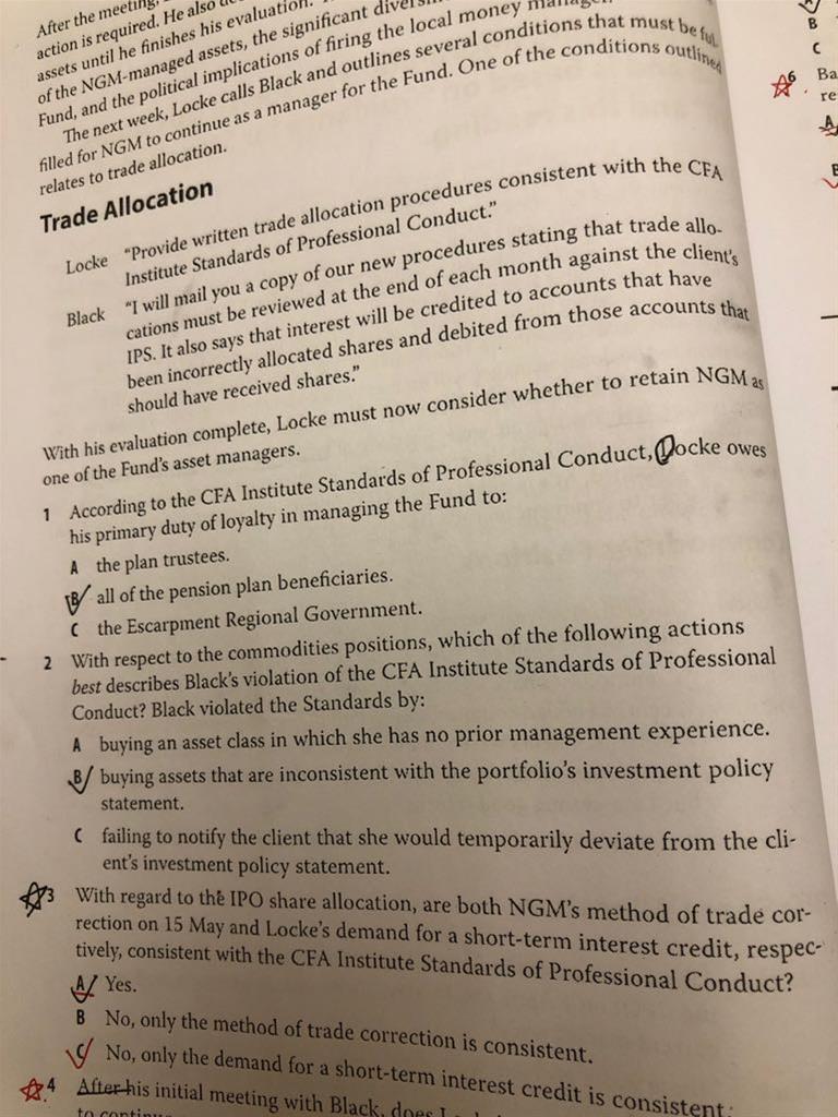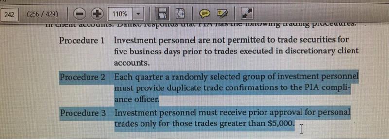 书第242页47题,procedure2和3的问题是什么? 2的问题是否是“randomly selected group” 所有investment personnel交易记录都必须提供给confirmation officer吗? 3的问题是否是“greater than 5000” 是所有的personal trades都得事先征得同意吗?不论金额大小?