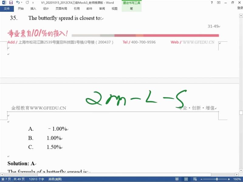 冲刺笔记上说butterfly是long barbell,short bullet。与模考上正好相反,应该如何理解