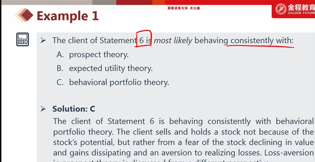 老师,这个题说涨到一定程度或者跌到一定程度就要卖掉,所以减少了loss averse的风险,但是这和BPT有什么关系?BPT好像没有这方面的内容啊。。