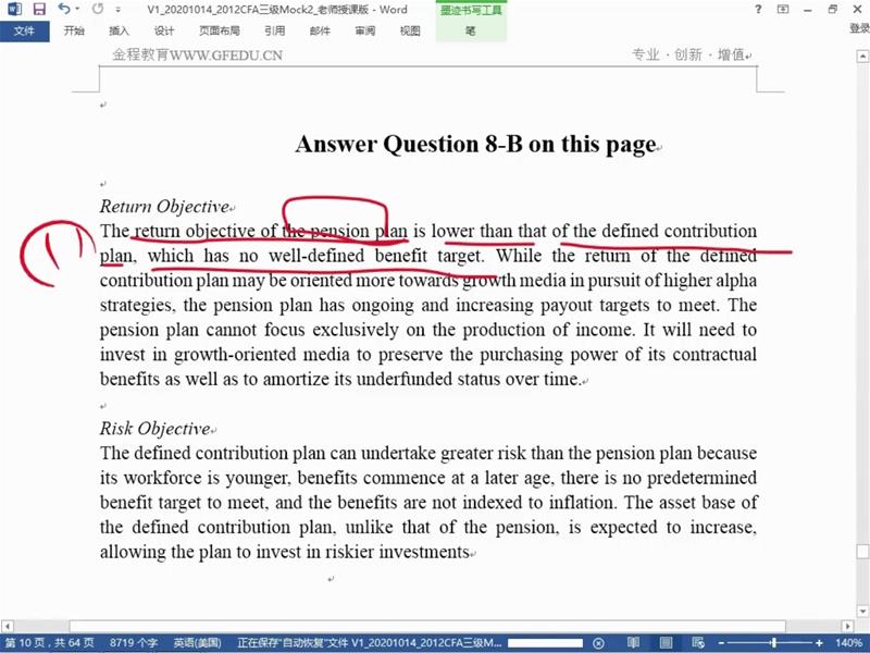 机构IPS的B题目,这里说contrast,到底是比大小还是比较其他方面的不同。比如DB是为了meet pension liability,而DC是为了support retirement spending needs。二者return objective也是不同的,所以不知道到底要回答什么