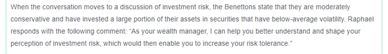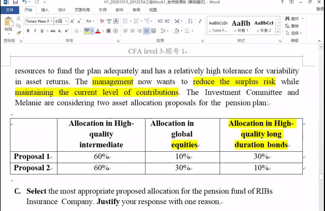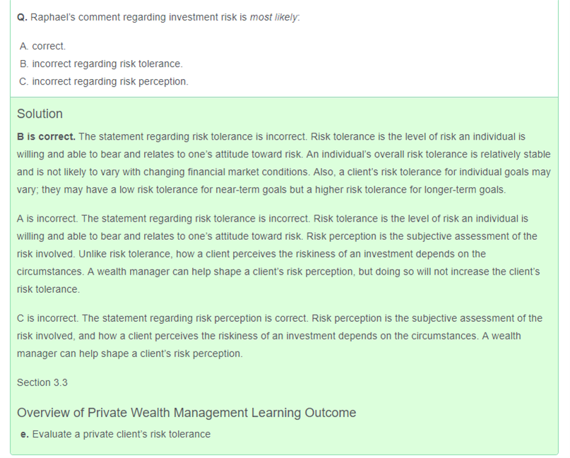 不好意思,我之前有問過這個問題,之前的回答是說 " RT是willingness和ability两者取其低,如果ability本来就是低的就算willingness再高RT还是低。所以不一定会增加。" 但是我再做一次題目,還是沒看到說他的ability to take risk ability 跟 willingness 哪個高哪個低,但是看investor的profile來說,ability to take risk 應該是高於 willingness的吧?因為他是net saver, no debts, long investment horizon。所以只要提高willingness to take risk,應該是會提高risk tolerance的吧?