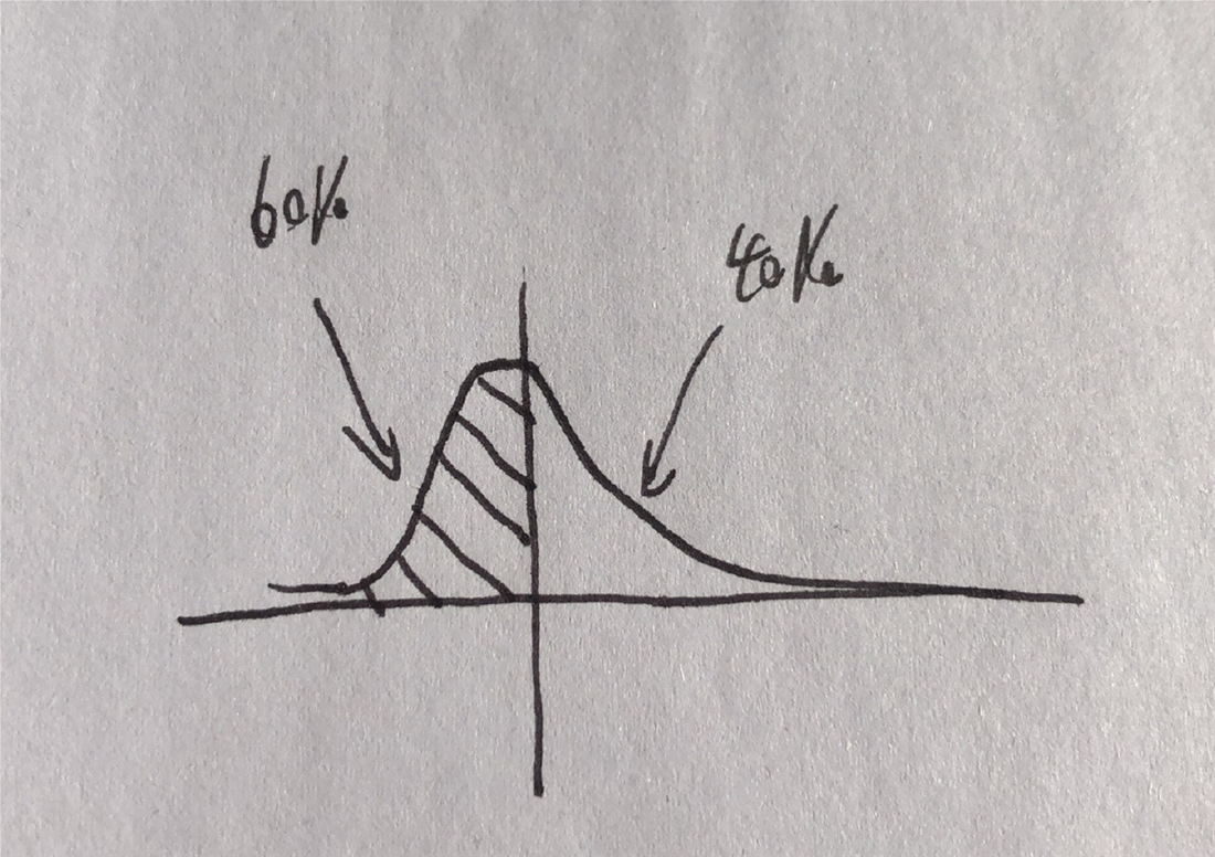R25书后题第8题, 题干中说"no more than 60% of the deviations from the mean are negative", 所以最差的情况就是60%的return低于平均值, 是不是就是照片中的情况? 所以此时必是负偏吧?