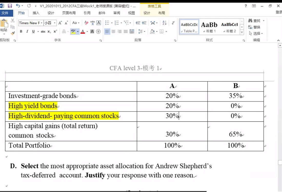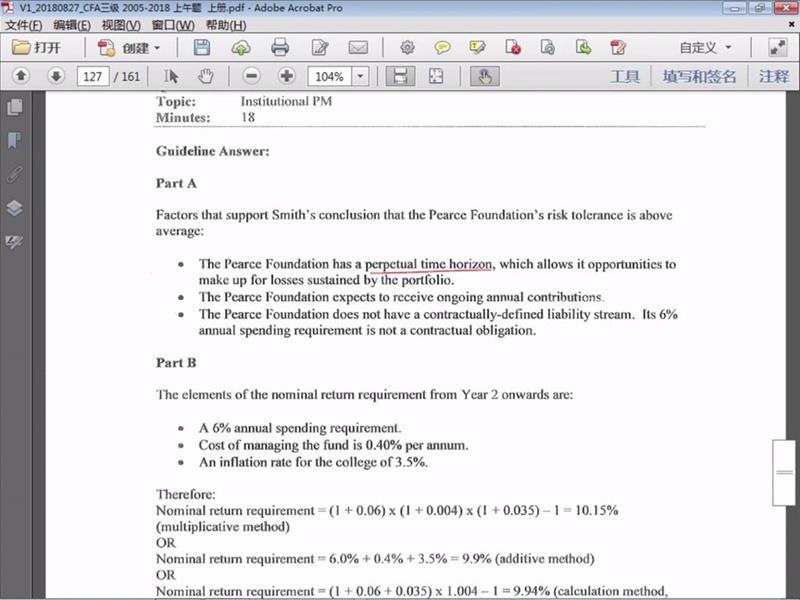R22书后题第7题, 对应文章中的Note5. 在重复做这道题的时候我想起来, 我们在Alternative中提到过, 对于diversification而言, alternative在长期上提供的diversification效果更好, 而短期的话bond比alternative更明显. 所以Note5里提及了在portfolio中增加投资级bond的权重会在短期降低风险, 这段内容上按理说应该是没有问题的吧? (当然我理解这道题中认为这是错的可能是因为Equity与Alternative不是同一个人写的, 他们对同一个概念的说法可能也有差异, 我只是做到这里突然想起来了哈)