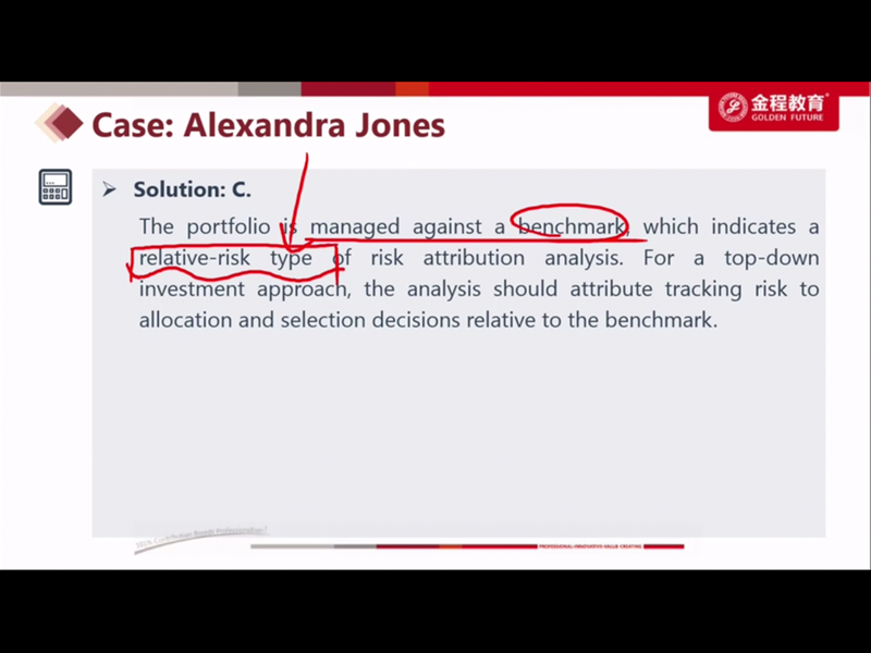 这道题的B选项,如果放在absolute环境下的,对top down approach的risk attribution,选项的原文对么,还是应该改成evaluate the MCTR for factor?