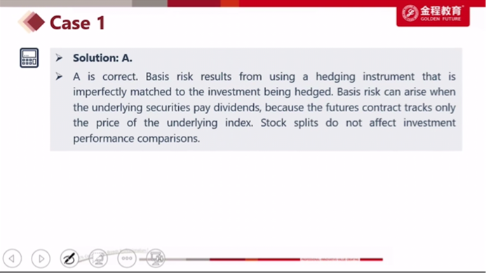 老师,这里最后一句话是什么意思啊?Stock splits会不会导致基差风险呢?