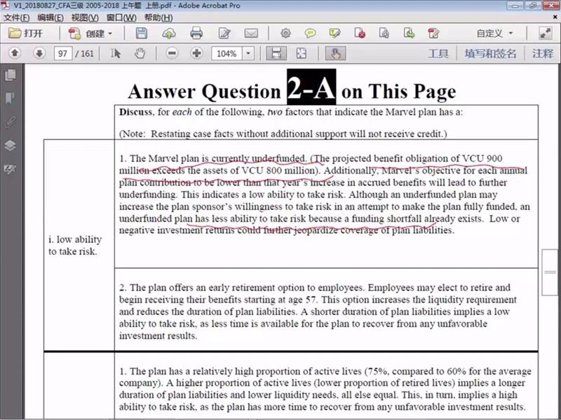 这里是8分的题目,也就是每个原因应该是2分,这里第一点,说the plan is underfunded,so it has lower ability to take risk(洪老师说这样就够了),但如果这样就够了,这句话的后半句等于没说嘛,只是把题目问的问题写写来了,并没有达到洪老师说的“现象+解释”中解释这一步,这样也可以么