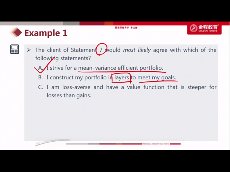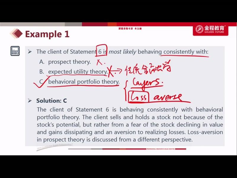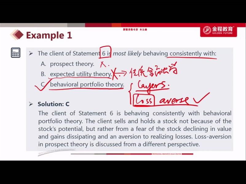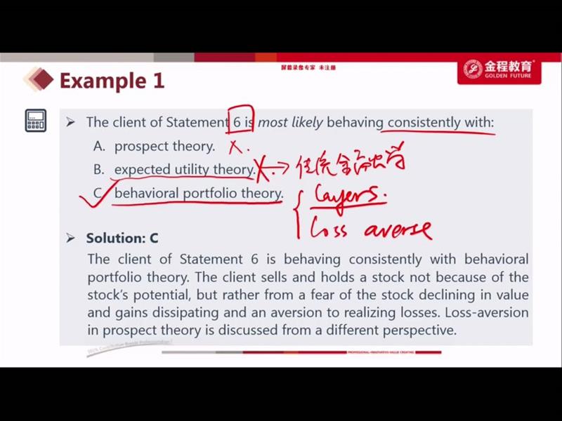 这道题A为什么不能选? 选C的理由是因为这个人是loss averse的,那loss averse不也是前景理论的一个特点么? 另外,这里这个人的这种交易模式,是在避免loss averse,也就是说他不是loss averse的咯?那为什么可以因为符合loss averse而选C呢