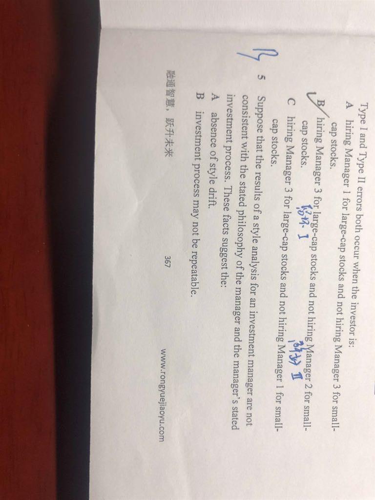 - 到底该怎么判断一类和二类错误?做的题目解答标准不一致啊,我看到另一道题的版本是 - 一类错误是做了错的事,二类是没做对的事。现在这一题,对于不合格的经理不采取行动,不就是二类错误 - 没做对的事吗?