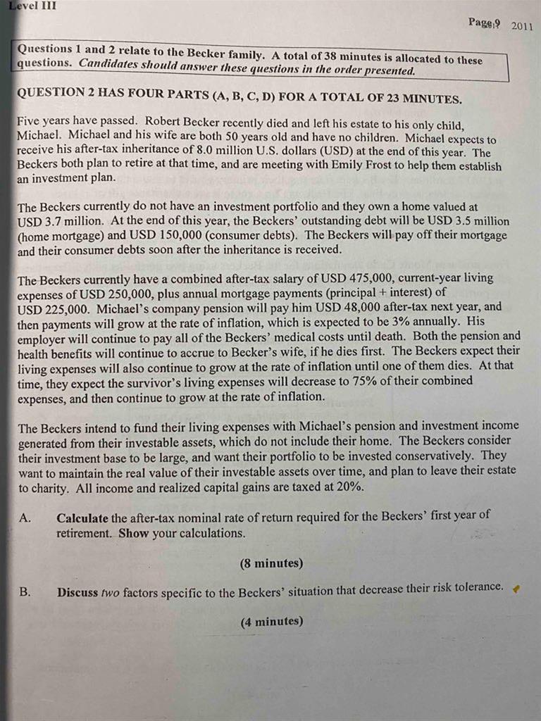 已回答个人IPS 2011Q2 c问的liquidity constraints,debt repayment是在拿到遗产后立刻还的需求,living expenses是next year退休的支出需求,为什么可以加在一起呢?