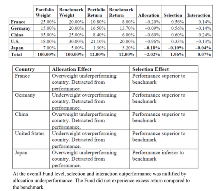 想請問在mock2 Q3C中 France 中 portfolio return: 10.8% 跟 benchmark return: 8.00%要怎麼解釋? portfolio return 是outperform benchmark 但是 underperform the overall benchmark return嗎? 謝謝