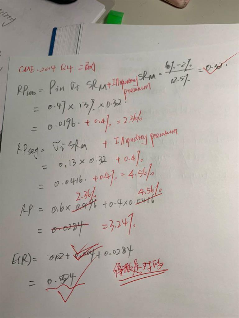 老师想问一下 CME 2014 A问 计算过程中不考虑illiquid premium 在最后求 expected return时 一并考虑 得数和原版书一样的 这样算对吗?就像我一开始铅笔写的?