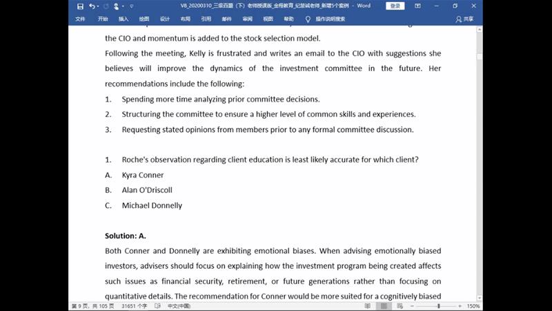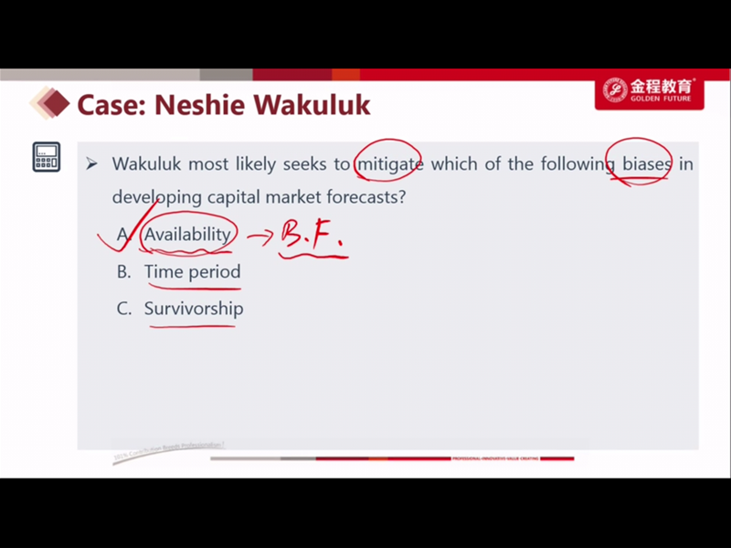 这里市场刚经历过金融危机,所以容易把幸存下来的公司作为投资的研究目标,这个不是survivorship bias么,为什么C不能选呢,A的available bias,题目中也没有说到W同学有类似的行为啊
