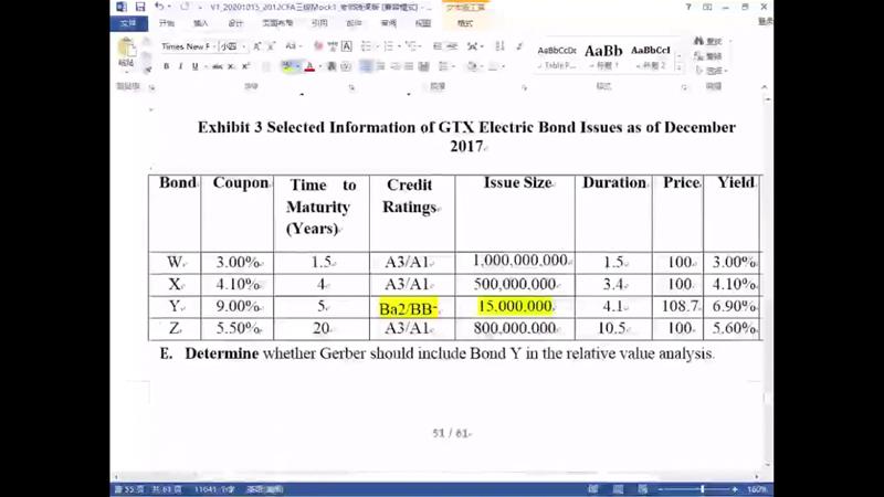 老师,我想请教一个题目之外的问题。这个表格里面的yield是假定持有到期后的ytm吧?w和X债券price都是100,可以换理解为和面值一样。 那么这个yield包括了后面的credit spread吗?如果不包括,折现后的price应该小于100。