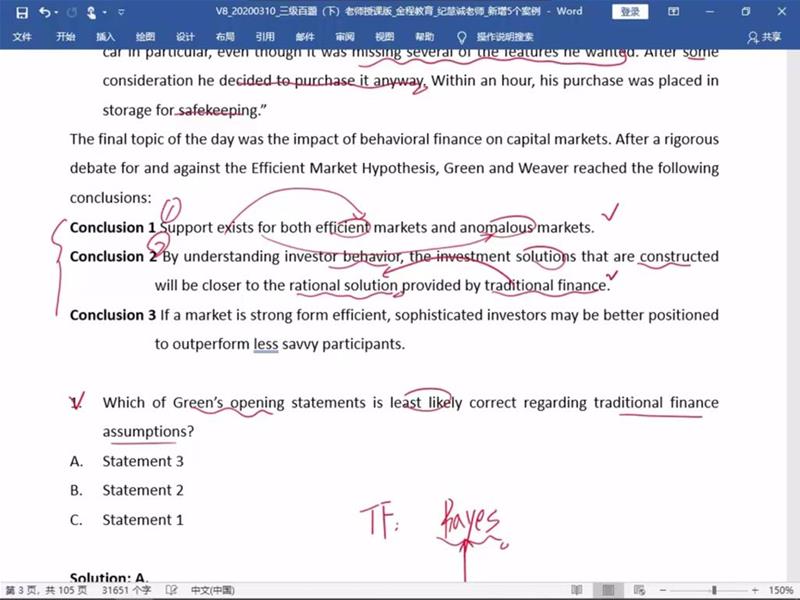包含CFA三级传统在线课程相关提问答疑;