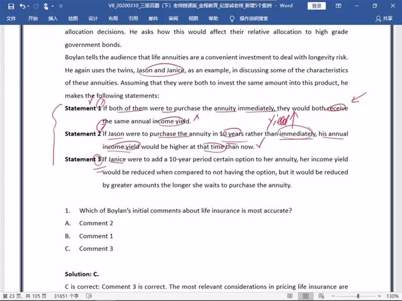 老师,Statement3也需要一个隐含条件:他们买的是即期年金吧?!如果是Deferred年金都是从退休开始支付,那么什么时候买的无所谓吧!