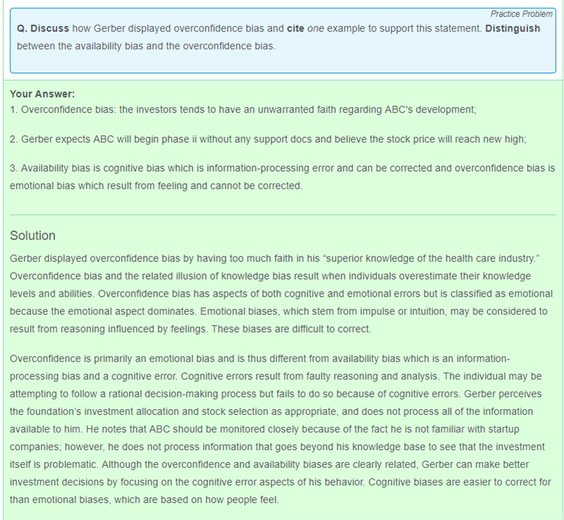 老师好,以图中这个题i的答案为例,如果直接写lower transaction costs lead to narrower corridor width for equities,while higher correlation between fixed income and equities leads to wider corridor width. So we cannot determined its change. 就是完全省掉中间的解释部分, 可以吗?会不会太简单了?