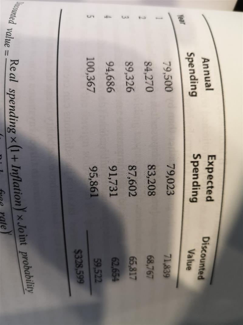 原版书后习题第2题C,请问老师这里的expected spending 和discounted spending是怎么算出来的?