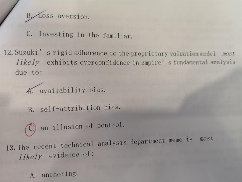 原版书后习题第12小题,为什么不能选A,也有availability bias吧?