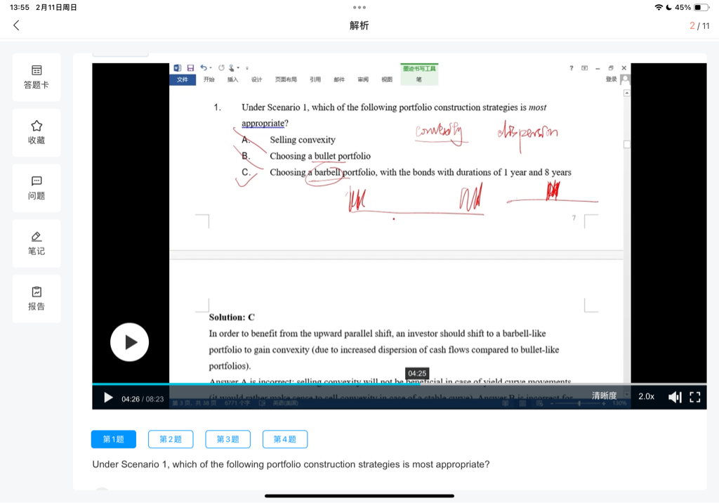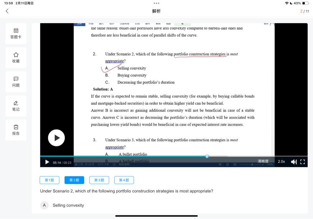 已解决不懂这里为什么要增加duration/convexity, scenario 1 不是upward parallel shift? 也就是说利率增加,债券价格下降,不是应该降低duration吗?