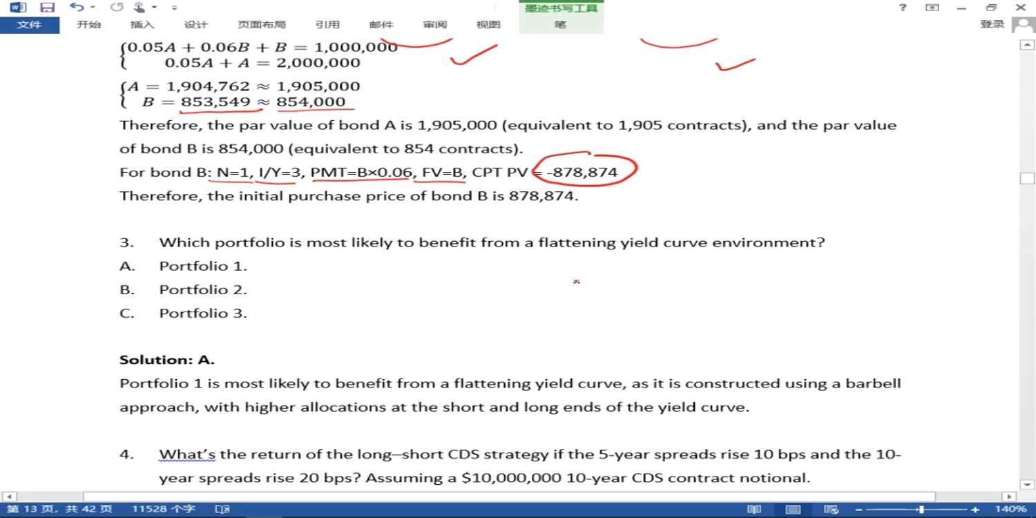 本case第二题cash flow matching问的是initial perchase price of Bond B 所以要折现1年期;如果是问Par value of Bond B就不需要折现,得到854,000就是答案了,对吧?谢谢