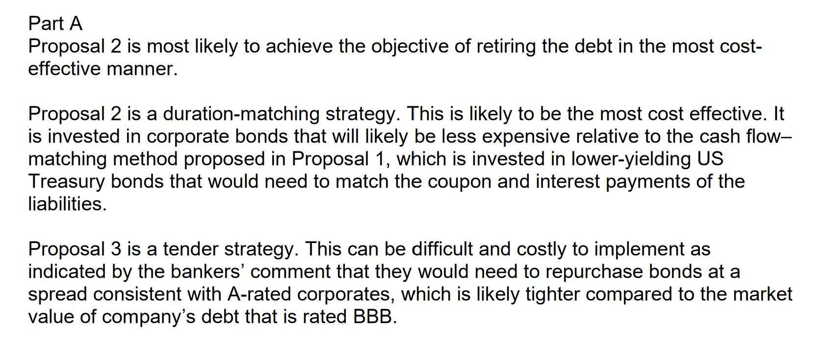 这道题,原文中的 bankers highlight that only Proposal 1 will qualify for accounting defeasement,说这句话是什么意思?就是为了迷惑吗? 第二个问题,答案中解释proposal3,to repurchase bonds at a spread consistent with A-rated corporates, which is likely tighter compared to the mark,spread tight不应该是便宜吗?整个这个解释都不理解