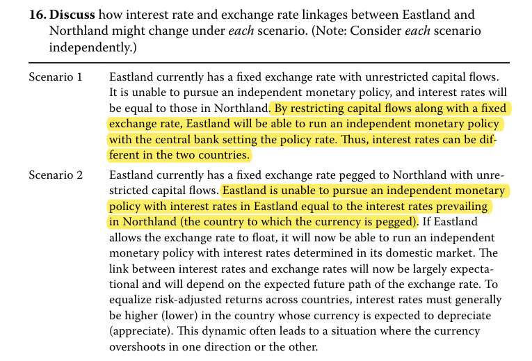 三级 CME 蒙代尔不可能三角,fixed 汇率、无限制的资本流动、独立的货币政策三者不可同时成立 请教为什么无法执行独立的货币政策后,会导致两国interest rate相等?两边汇率不同,利率应该可以不同吧