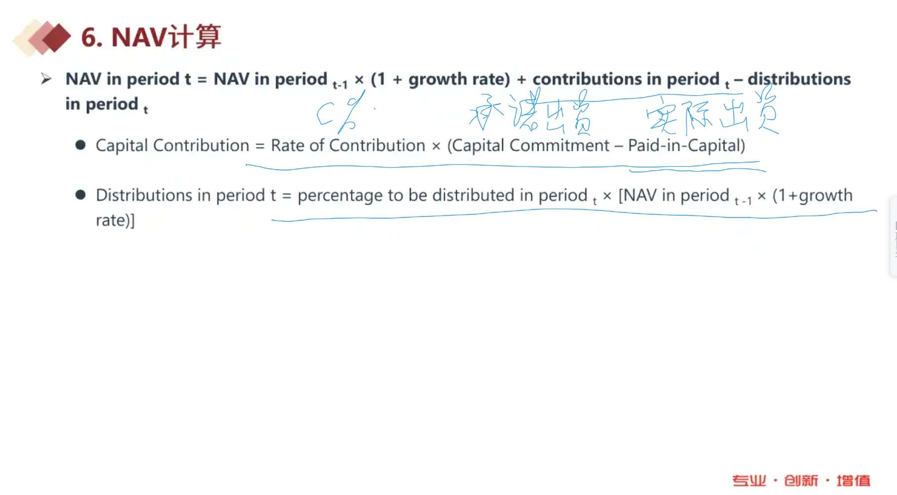 这里理解不了,每年新增的capital contribution为什么是rate of contribution乘以(承诺出资-实际出资)?rate of contribution是指每年必须要新投入还未投资金额的固定比率?