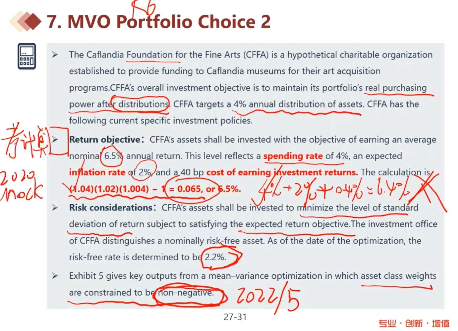 包含CFA三级传统在线课程相关提问答疑;