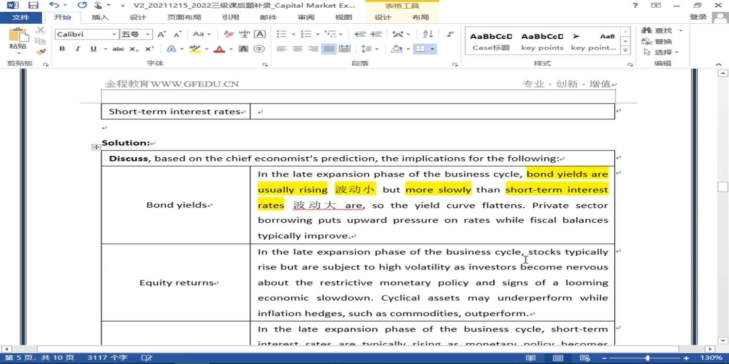 在经济周期的题目中,Bond yield和short term interest rates区别是什么?在经济周期的5个阶段里都是同向变化只有幅度不同吗?按照本题答案 bond yield就是看long term interest rate, 请问老师我这样理解对吗?