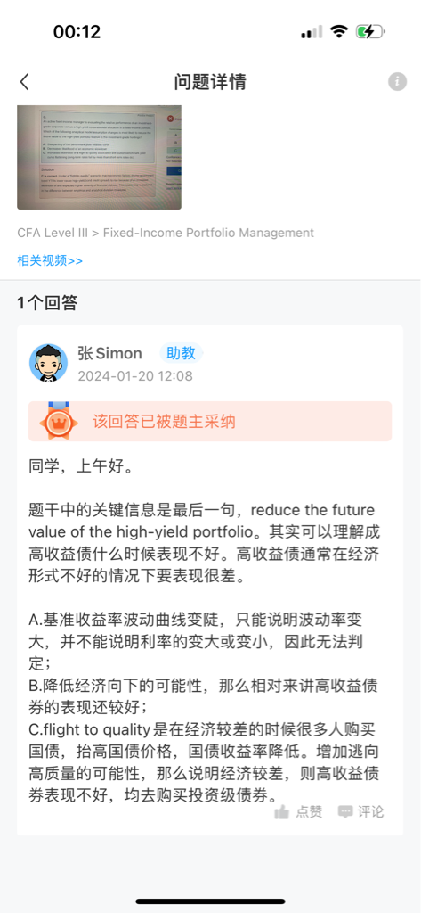 包含CFA三级传统在线课程相关提问答疑;