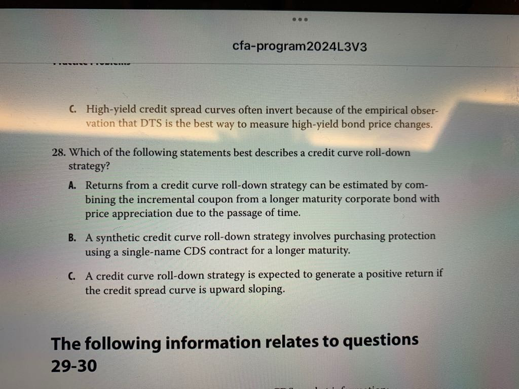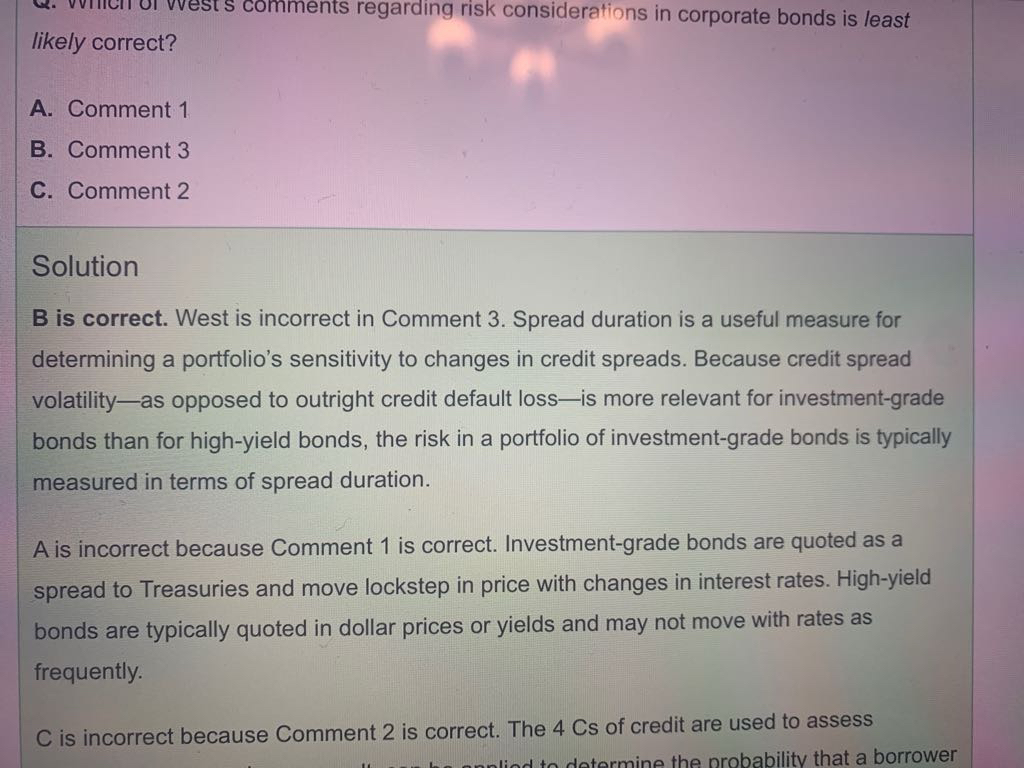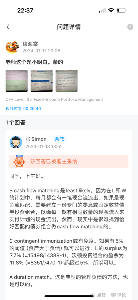 包含CFA三级传统在线课程相关提问答疑;