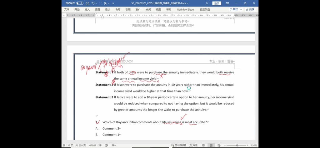 包含CFA三级传统在线课程相关提问答疑;