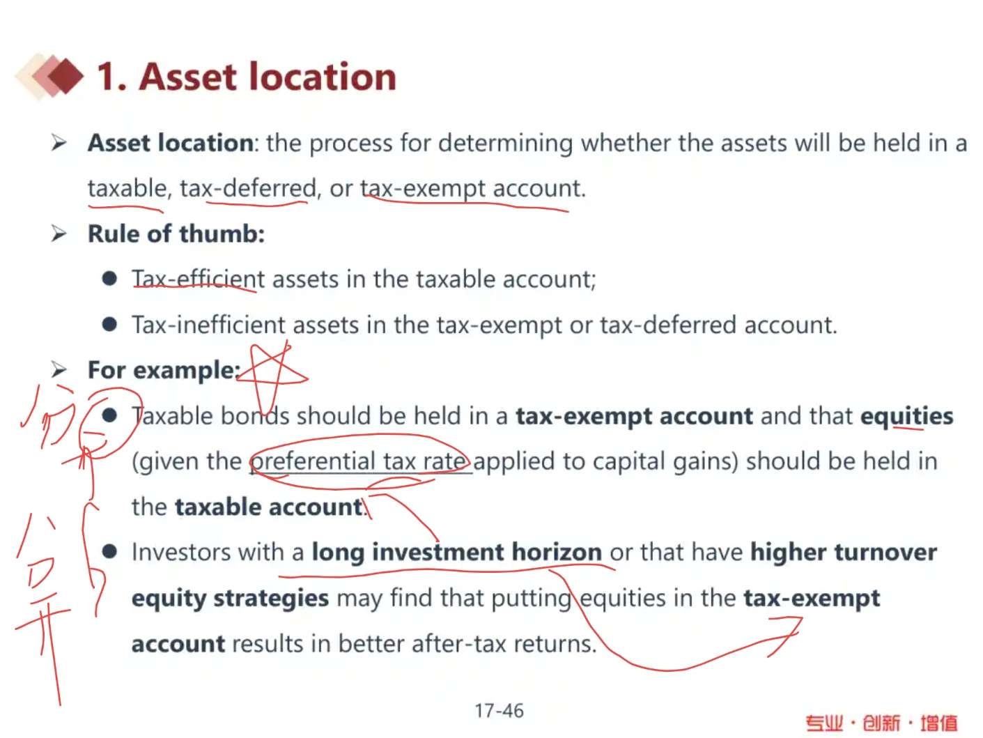 这里为啥投资期限长的股票应该放入免税账户而不是课税账户啊,是和什么相较而言?