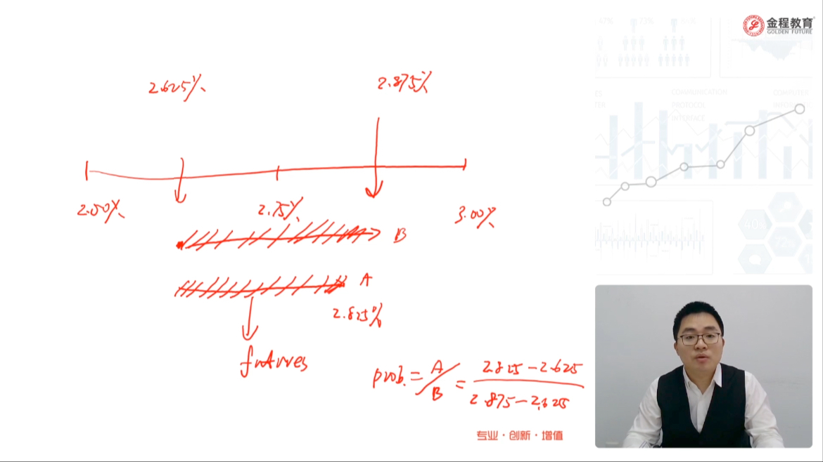 老师你好,我想问一下这个计算概率问题,从式子上看感觉是升息升到2.825%的概率而不是整体从原来的区间升到2.75到3.0,这一段该怎么去理解么?