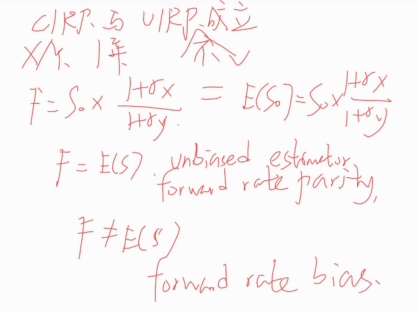 直播视频的1小时17分,老师这里在解释什么是foward rate bias的时候,是不是口误了?老师说的是”目前市场观测到的即期汇率,不能成为未来预期的即期汇率的无偏估计,就是Forward rate bias 。应该是目前市场观测到的“远期”汇率吧?