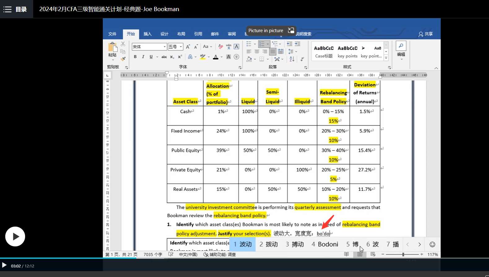 包含CFA三级传统在线课程相关提问答疑;