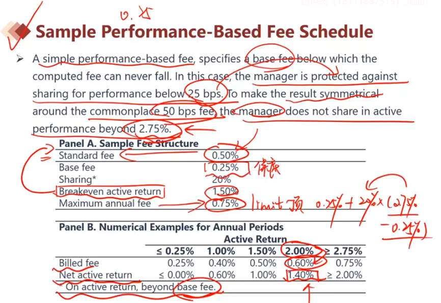 基金费率应该是按照AUM来收取管理费,用基金当期赚取的“绝对收益率”超出门槛费的部分再征收激励费这种模式嘛,为什么截图中使用的是active return来减门槛费?积极收益是Rp-Rb,是相对收益啊