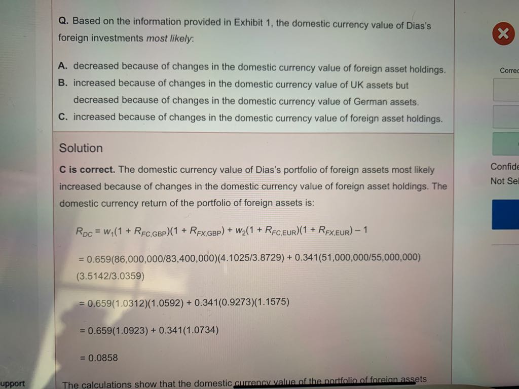 老师这个题思路是什么?两个asset value都增了。GBP升值,EUR贬值,要通过计算来定吗