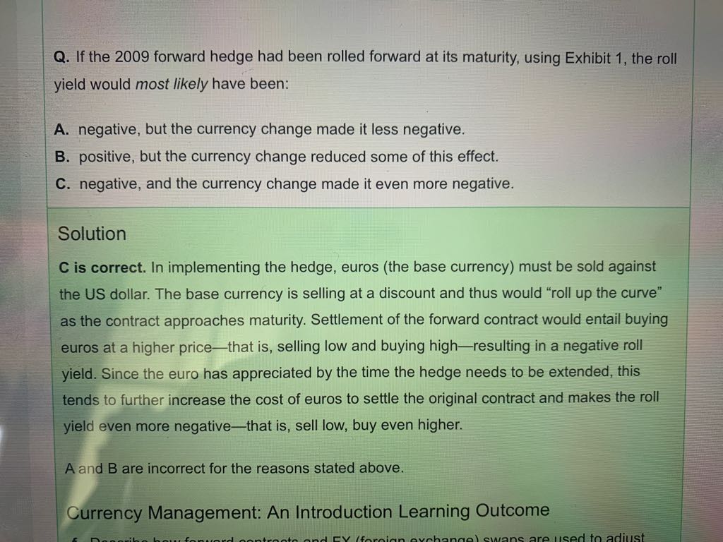 老师,这个题,外汇远期降了,所以F-s是negative,对么。欧元涨,欧元是base currency,要用欧元买F来roll,所以更贵。这个意思?