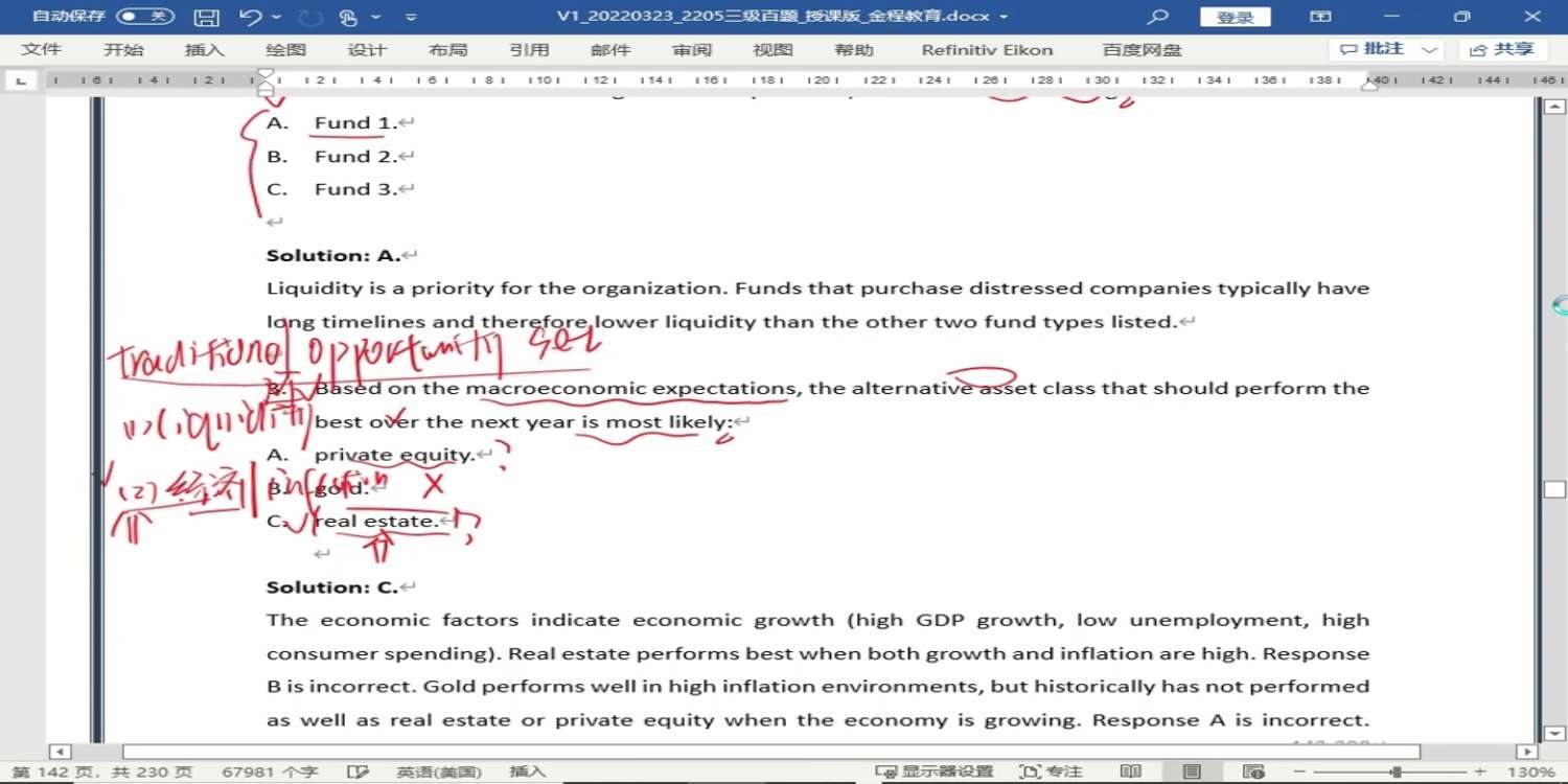 包含CFA三级传统在线课程相关提问答疑;