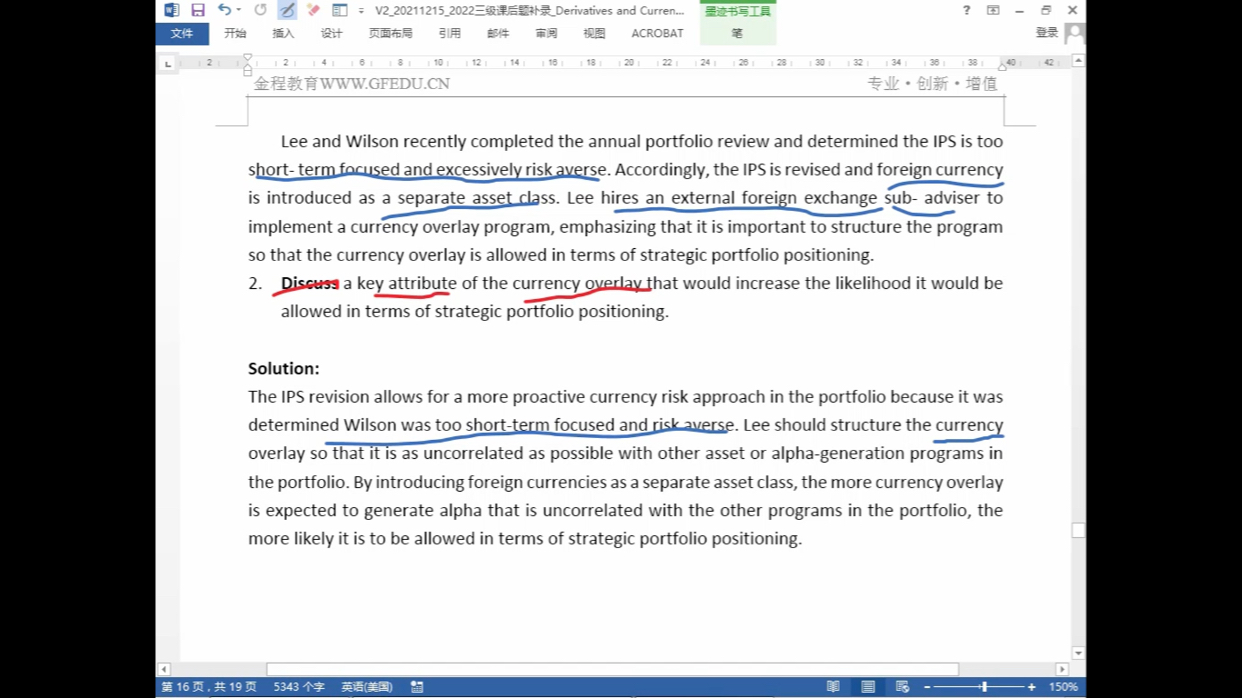 老师,这个题从答题角度,我需要写到哪些。写K是currency overlay,利用波动赚钱,所以FX,卖出期权,然后利用这个波动性roll over,赚期权费?