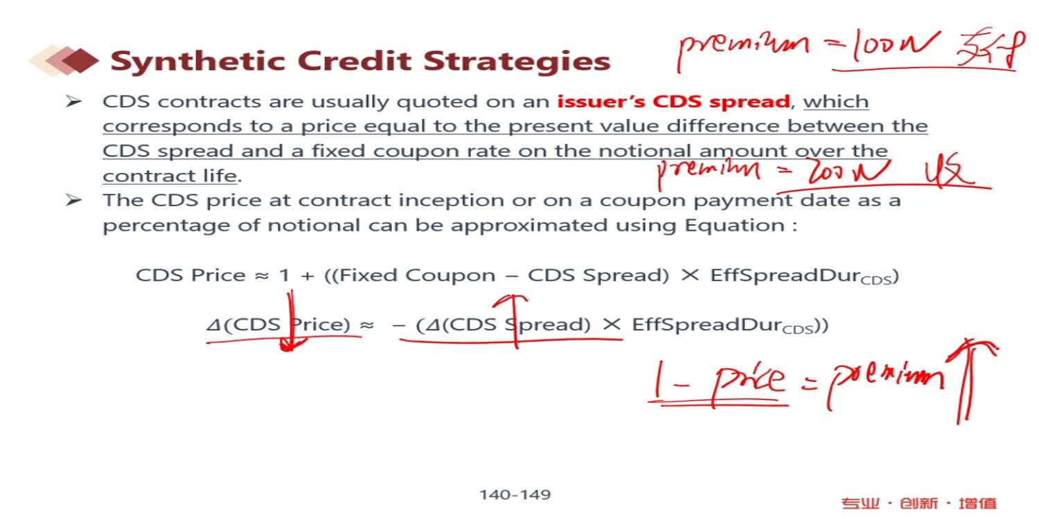 这里说1-price=premium, 但fixed coupon - CDS spread是不是也叫premium? 这俩premium一样吗