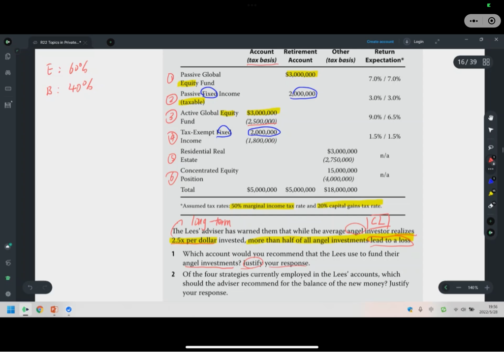 天使投资期限长 根据tax location 期限长的放tas inefficient 也就是TDA TEA中 老师为啥分析时说因为其常产生损失所以放taxable中抵税