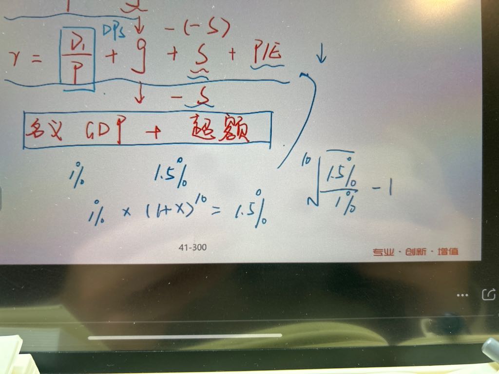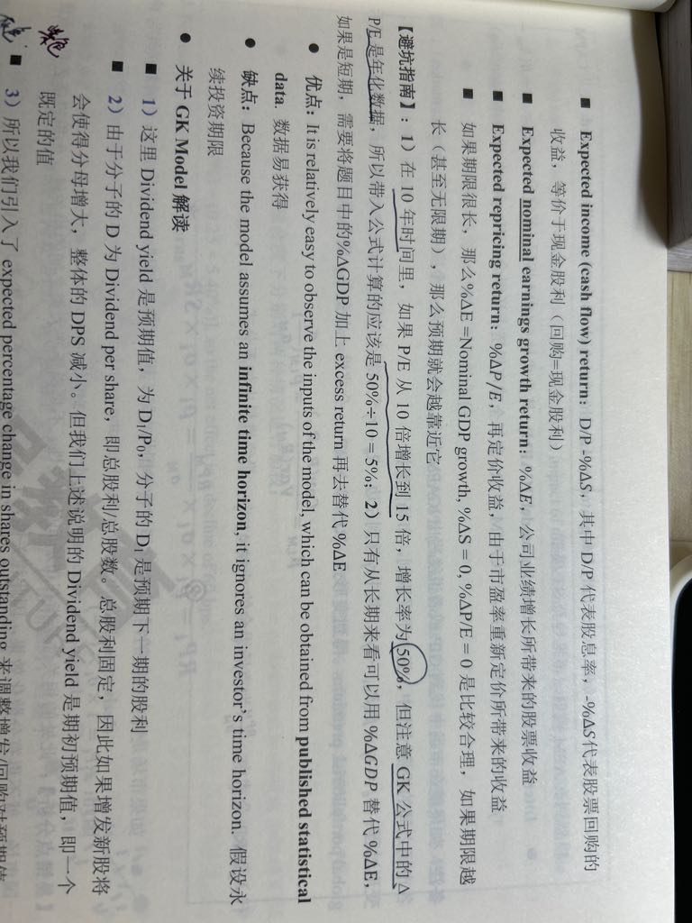 GK model中p/e的计算,冲刺笔记中是直接除年份数。example中采用复利的方式?这两个有什么区别吗?应该用哪一个为准?