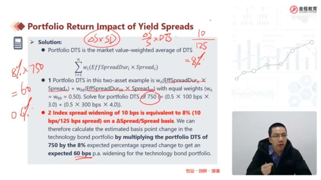 这里说的是index spread widening了10个bp,为啥是用10除以125等于8%,而不是用10除以porrfolio本身的spread(我理解应该按照两个债券各自的oas加权计算),从而得到变化的比率?