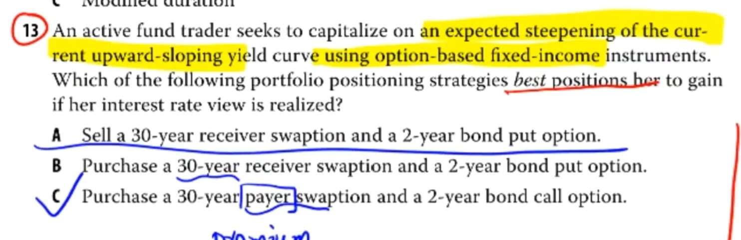 example2,老师这个地方讲A,后半句,说对于买家call option才会获益,所以不会行权。为什么说call option买家会获益,含权债券不都是降低了久期,这个地方利率下降,应该增加久期才对呀。