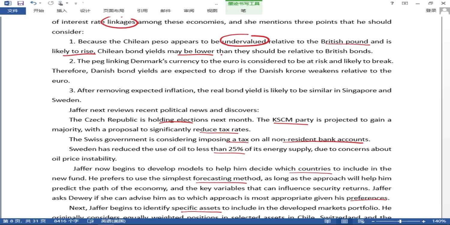 point1,Chilean peso appears to be undervalued,也就是说目前它是相对贬值的状态,那么对peso的需求偏低,价格低,利率偏高,这样理解不对吗