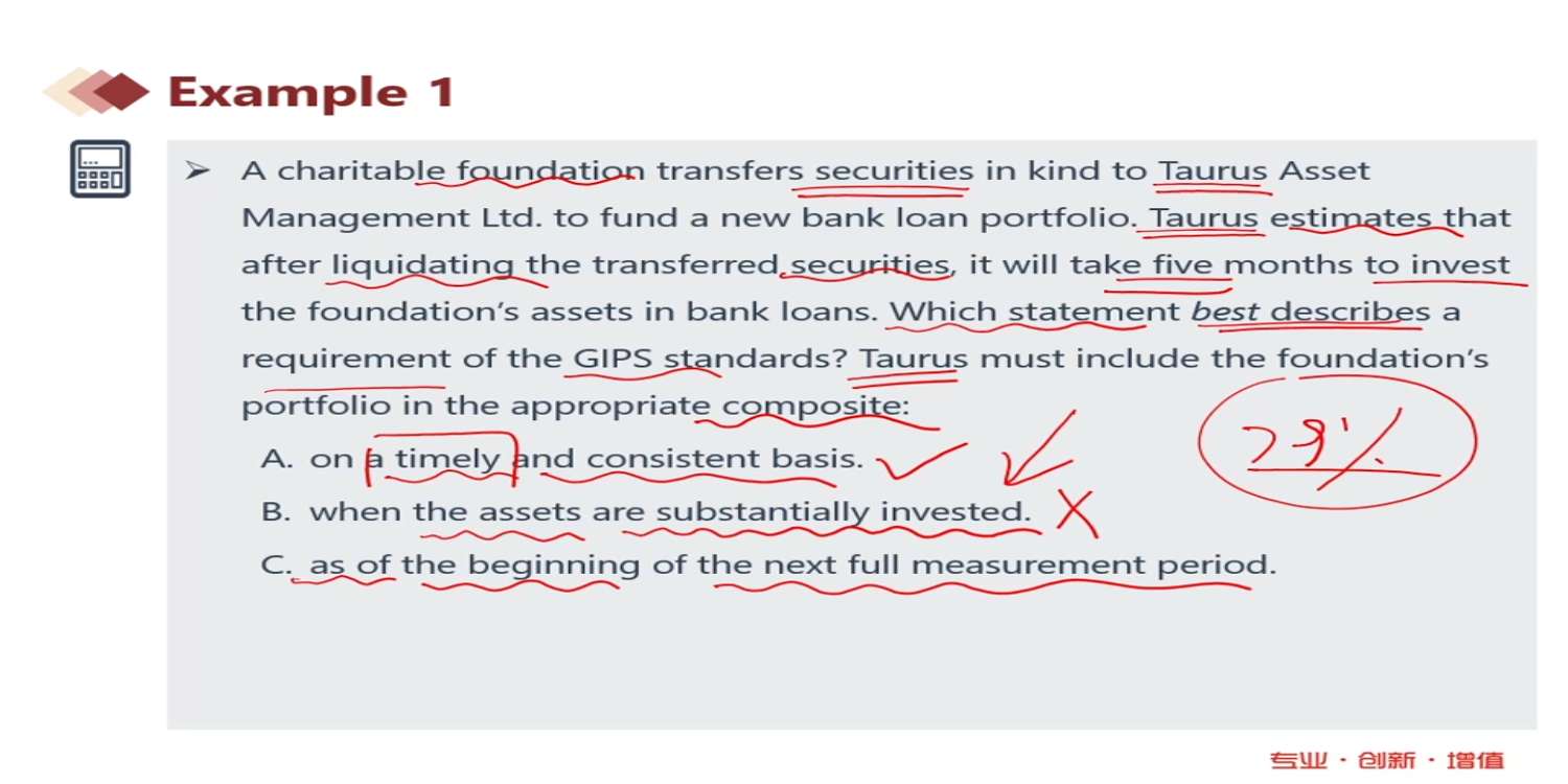 已回答我理解这里B是错的,到底什么时候应该开始纳入啊,B错的点是substantially invested吗。因为前面的PPT是说等到external cash flow都投资完了再从临时账户里纳入
