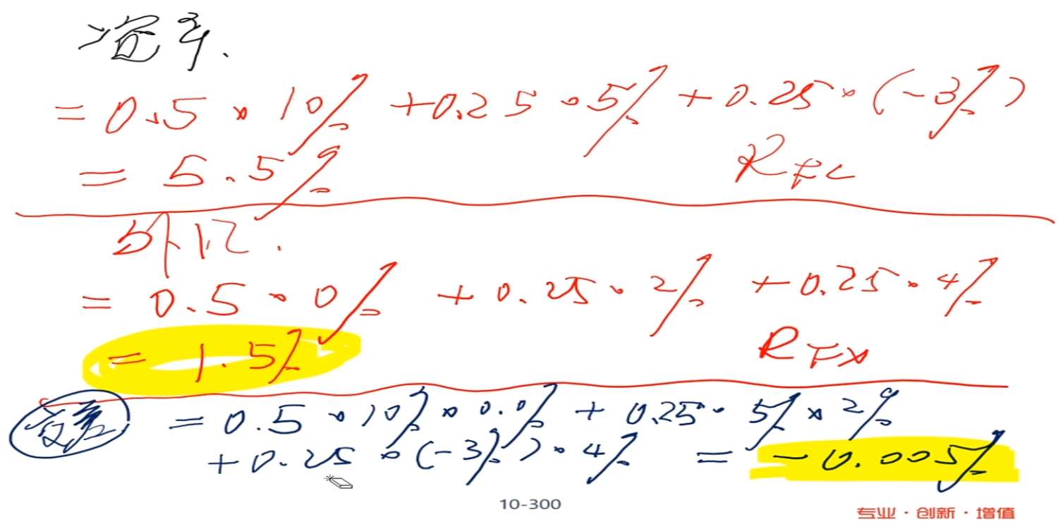 这题为什么不能分别按权重算出USD, EUR和JPY对于domestic currency return的贡献,然后加总为总贡献呢?算出来不等于7%,不知道错在哪里
