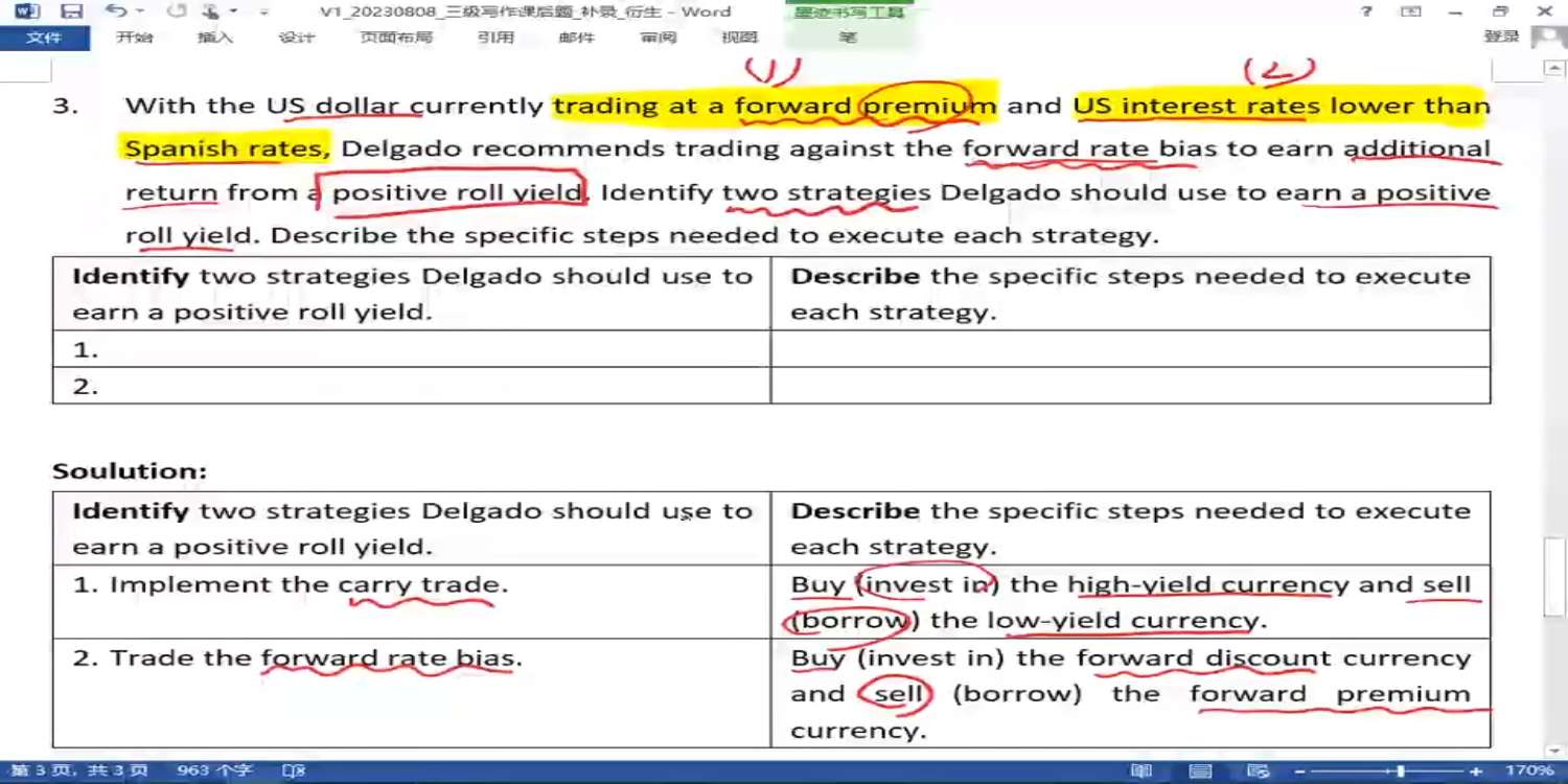 第三问解答没听懂……可以再代入USD和EUR,详细阐述一下买哪个卖哪个吗?如果是carry trade是不是卖USD买EUR,如果是forward rate是不是买EUR/USD forward卖USD/EUR forward?如果是的话,carry trade和forward rate bias策略的操作方向不是反的吗?